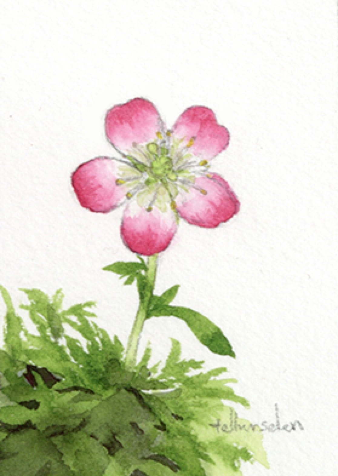 寒さの残る早春の貴重な彩り、洋種クモマグサを描きました。